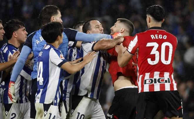 在巴尔韦德隔空喊话的同时,桑切特冲上去推倒了阿兰布鲁,导致两队球员爆发冲突。之后,维维安劝开阿兰布鲁,奥亚萨瓦尔劝开桑切特,避免了事态升级。