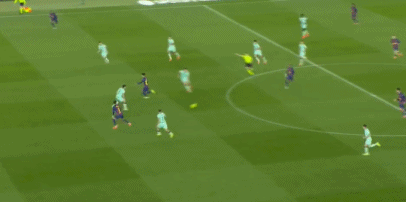 埃里克-加西亚前场抢断,莱万禁区内潇洒过人,小角度强行起脚抽射,乌奈-西蒙扑了一下依旧入网,1-0!